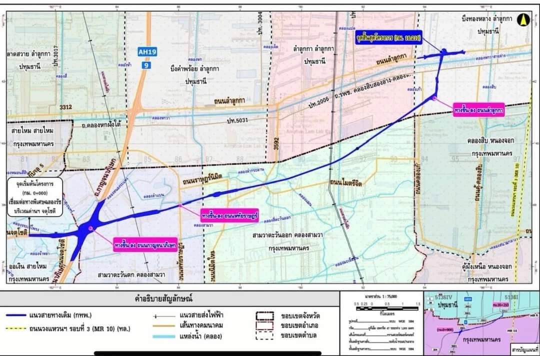สำหรับการเชื่อมต่อกับโครงการถนนวงแหวนรอบนอกกรุงเทพมหานคร รอบที่ 3 (MR10) ของกรมทางหลวง(ทล.) นั้น ขณะนี้อยู่ในขั้นตอนการทำรายงานการขอเปลี่ยนแปลงรายละเอียดโครงการในรายงานอีไอเอ เพื่อต่อขยายเพิ่มในส่วนปลายทางจาก ถ.ลำลูกกาเชื่อมกับ MR 10 ซึ่งเตรียมเสนอคณะกรรมการผู้ชำนาญการพิจารณารายงานการประเมินผลกระทบสิ่งแวดล้อม (คชก.) พิจารณาเร็วๆ นี้ ขณะเดียวกันอยู่ระหว่างการออกแบบรายละเอียดเบื้องต้นจุดเชื่อมต่อ MR10 คาดว่าจะแล้วเสร็จภายในเดือน พ.ค.นี้